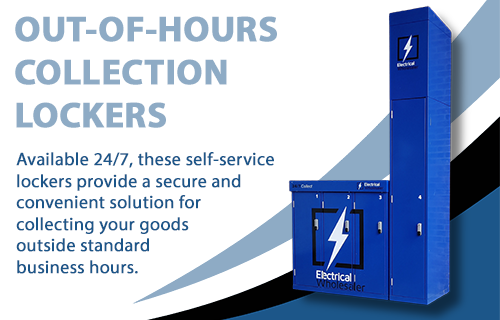 We hold large stocks of cables, consumer units, heaters, ventilation products, lamps, lighting, switches and sockets, tools, site equipment and other accessories. Almost all of the products on our website are currently available on a click & collect service, ready to be collected the same day.