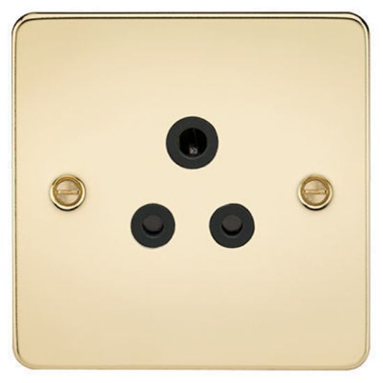 Flat Plate 5A Unswitched Socket - Polished Brass with Black Insert